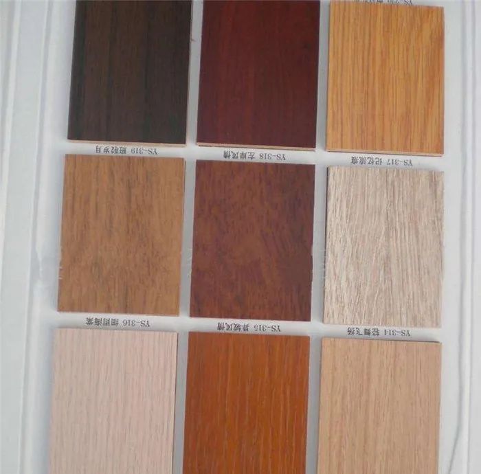 (2)是将带有不同颜色或纹理的纸放入三聚氰胺树脂胶粘剂中浸泡,然后干燥到一定固化程度,将其铺装在刨花板、密度板上等。